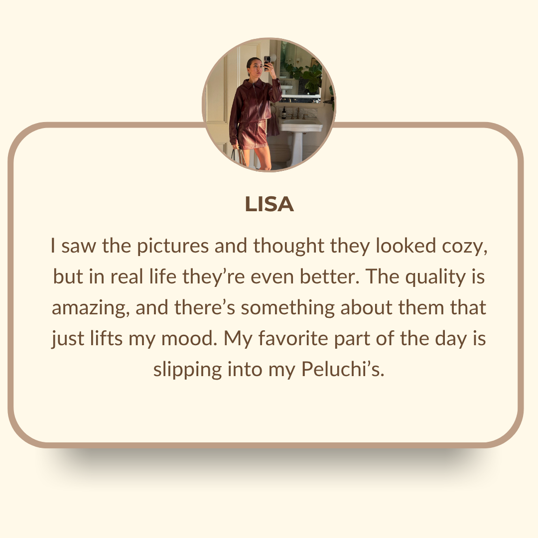 Peluchi’s is more than a brand; it’s an invitation to feel at home — not only in your space, but in yourself. A soft offering of love made tangible, a reminder that life can be tender, that warmth still lives in simple moments, and that even a cozy step can carry light