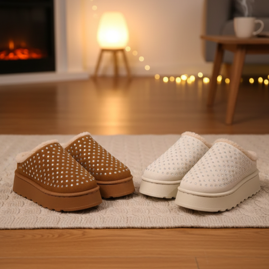 These slippers have that cozy-but-cute energy that just makes you smile before you even put them on. They feel like the kind of warmth you take with you — stepping outside for a moment, grabbing the mail, or walking around the house with that soft winter comfort hugging your feet. The little rhinestones add this subtle sparkle that makes even the chillier days feel a bit more fun and lifted. A small reminder that comfort can also look beautiful on you.